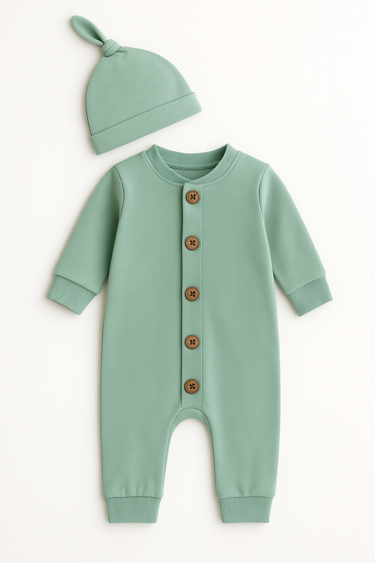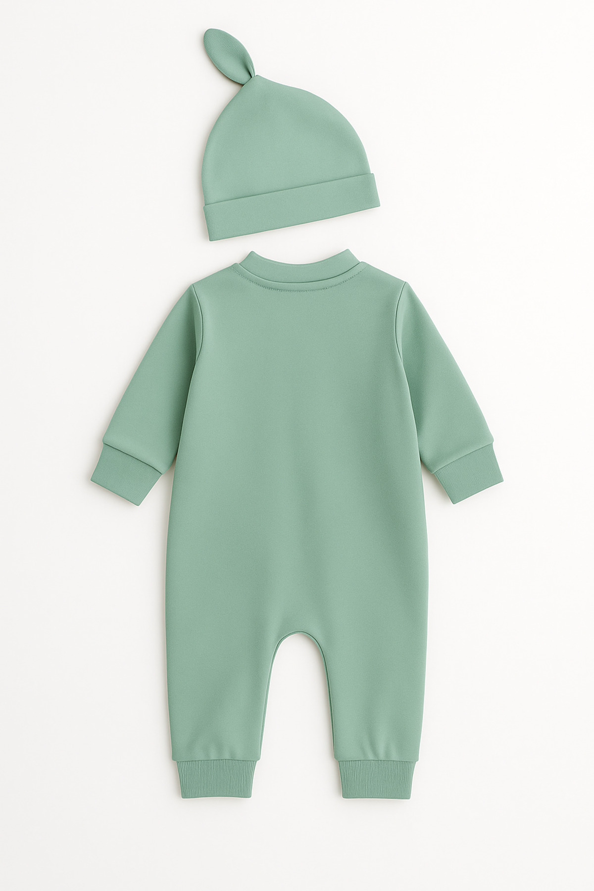Şık bere detayı tulumu tamamlar, bebeğinize hem konfor hem de sevimli bir görünüm kazandırır.