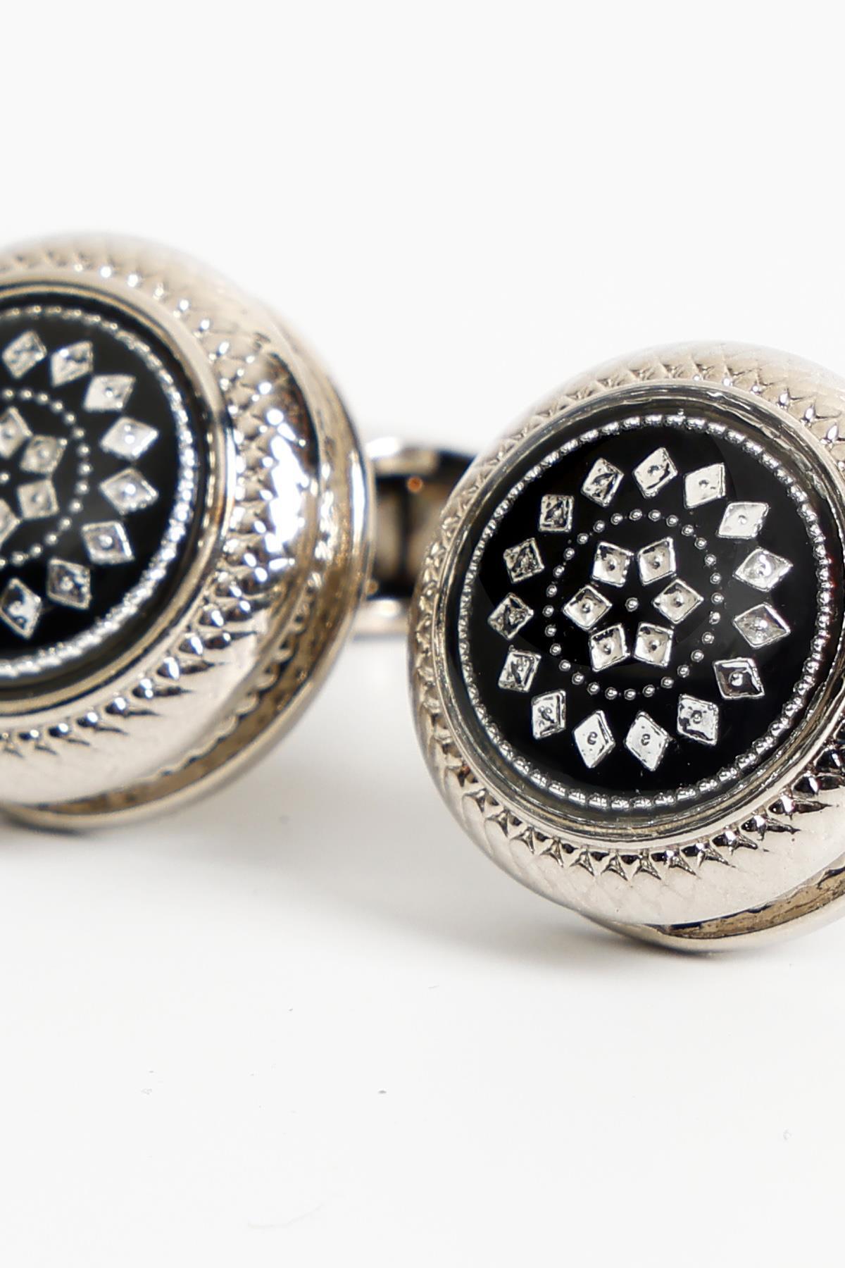 Gümüş Renk Siyah Desenli Yuvarlak Kol Düğmesi KD:7200