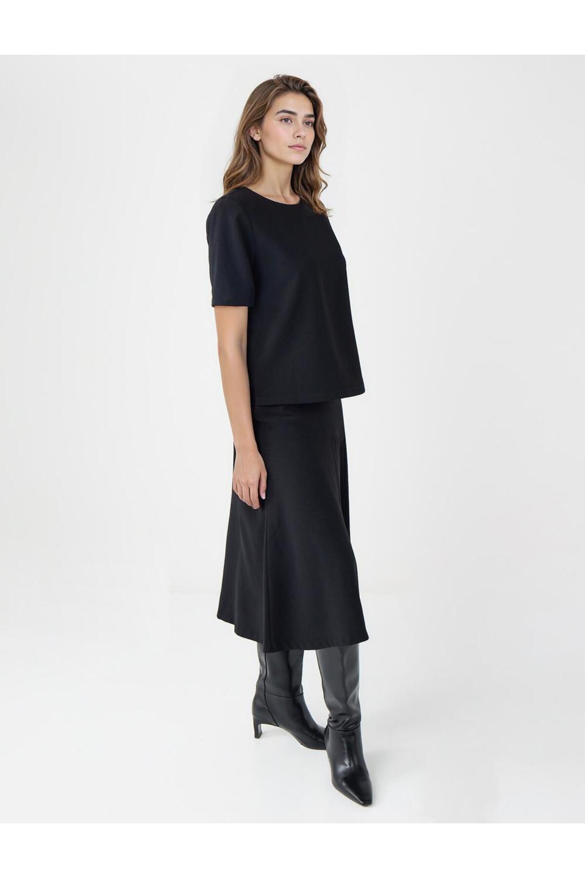 - Klasik ve zamansız bir seçim olan siyah düz kesim midi etek, her gardıropta yerini almayı hak ediyor.