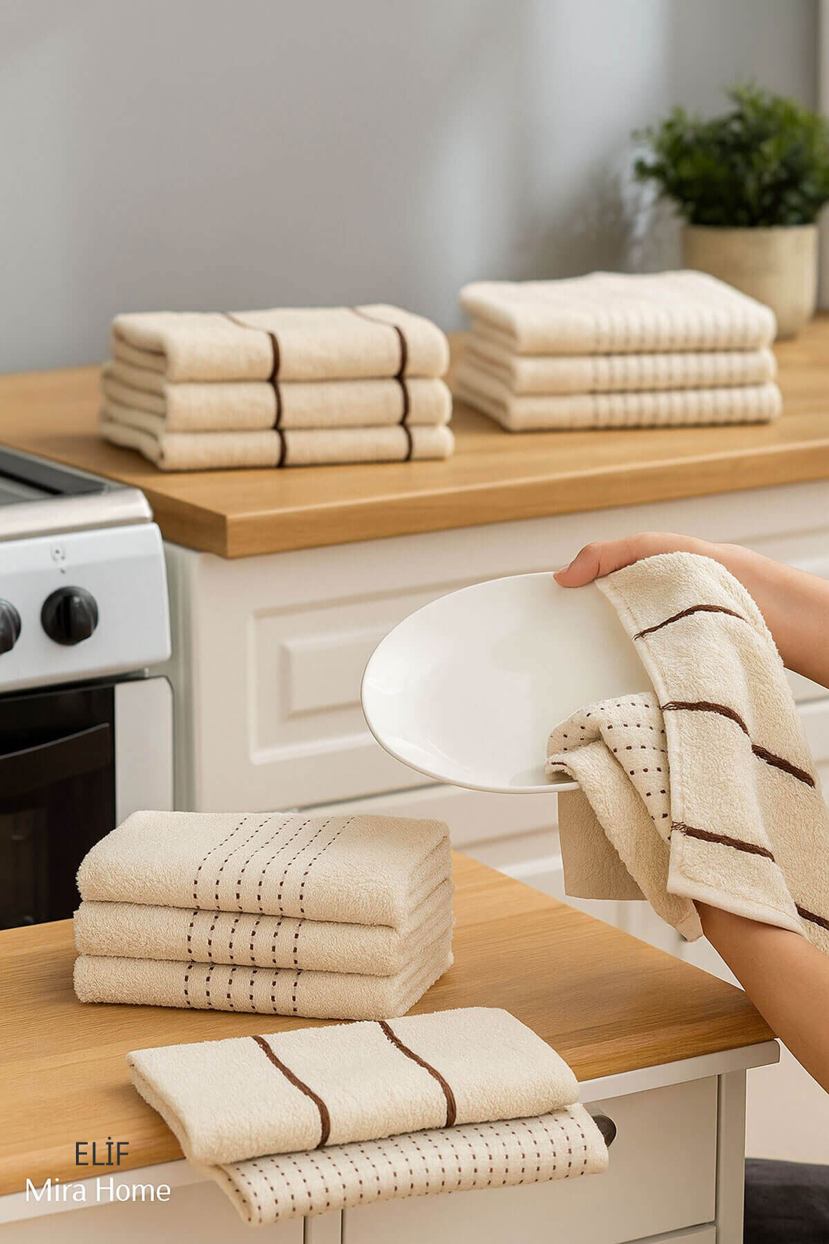 30x50 cm ölçülerindeki bu havlular, yüksek emici yapısı sayesinde tabak, bardak ve mutfak yüzeylerini kısa sürede kurular.