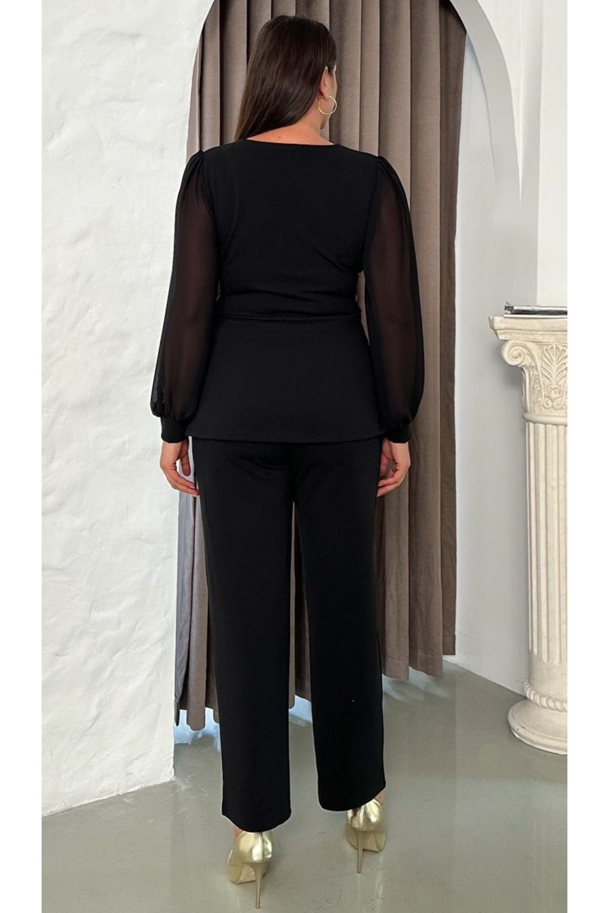 - Krep kumaşın zarif dokusu, bu abiye takım elbisenin şıklığını ön plana çıkarır.