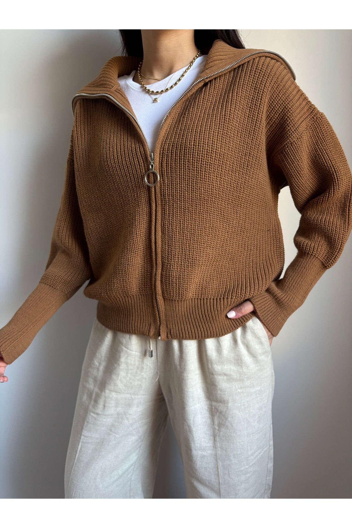 - Triko kumaşı, yumuşak dokusuyla cildinize nazikçe dokunur ve sıcak tutar.