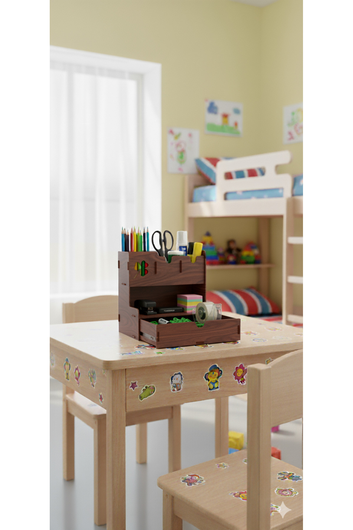 Clover 4 Gözlü Çekmeceli Masaüstü Ahşap Organizer Kalemlik- Takı Makyaj Çok Amaçlı Organizer